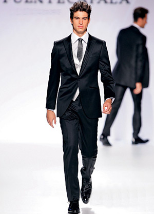 修身的黑色西裝顛覆了以往的西裝禮服設(shè)計(jì)概念,打造出時髦又不失傳統(tǒng)的新郎形象。裁剪精致的西服正裝,散發(fā)著新郎成熟的魅力。