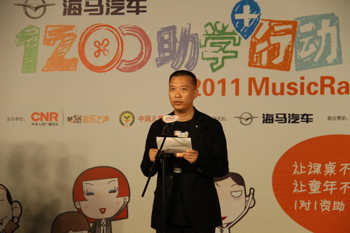 此前,由中央人民廣播電臺(tái)MusicRadio欄目主辦的“我要上學(xué)”系列公益活動(dòng)已經(jīng)連續(xù)舉辦了9年,已有無數(shù)貧困學(xué)生受惠于此項(xiàng)公益活動(dòng),獲得生活和學(xué)習(xí)上的幫助。2011年“我要上學(xué)”公益活動(dòng)再次將捐助的目標(biāo)確定為貧困地區(qū)學(xué)生,將為他們籌措每人3年的生活補(bǔ)貼1200元。同樣作為熱心公益事業(yè)的愛心企業(yè)之一,此次活動(dòng)也獲得了海馬汽車的大力支持。 作為國內(nèi)自主品牌的代表,海馬汽車積極投身到“我要上學(xué)”公益活動(dòng)中來。作為共同發(fā)起方,海馬汽車不僅為主辦方提供了大量的資金援助,同時(shí)也在前期預(yù)熱的貧困學(xué)校探訪中,主動(dòng)捐贈(zèng)了20名貧困學(xué)生,與貧困學(xué)生家庭進(jìn)行了面對(duì)面的幫扶,并組織海馬汽車愛心車隊(duì)對(duì)貧困小學(xué)進(jìn)行了實(shí)地探訪。 在此次“我們一起+”記者啟動(dòng)會(huì)上,海馬汽車銷售公司總經(jīng)理吳剛與到場(chǎng)的愛心人士及媒體分享了活動(dòng)所見所感,并號(hào)召大家一起加入到2011MusicRadio“我要上學(xué)——1200助學(xué)+行動(dòng)”活動(dòng)中來。