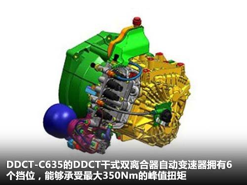與之匹配的,是一臺代號為“DDCT-C635”的DDCT干式雙離合器自動變速器。這款變速器擁有6個擋位,能夠承受多大350Nm的峰值扭矩。