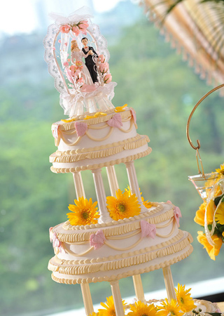 10、婚宴蛋糕的制作當(dāng)然也應(yīng)與季節(jié)相結(jié)合,可以選用太陽花的圖案來裝飾蛋糕;至于蛋糕內(nèi)部的用料,可以選擇榛子、胡蘿卜和巧克力。 11、在親朋好友的祝福聲中,你們乘坐四輪馬車離開將會(huì)成為最浪漫的退場(chǎng)方式,只要上網(wǎng)查詢,你就能輕松了解哪有出租馬車的地方。另外,用老式大卡車作為迎送賓客們的交通工具,也別有一番情趣。 最后,婚宴裝飾的細(xì)節(jié)也是不容忽視的。你們可以用來自祖輩們的紀(jì)念品作為裝飾,也可以把紅酒瓶的軟木塞當(dāng)作刀架使用,或者是在宴會(huì)廳的周圍放上幾捆干草等等?傊浞职l(fā)揮想象力,運(yùn)用聰明才智令你們的秋季婚宴更加完美吧。