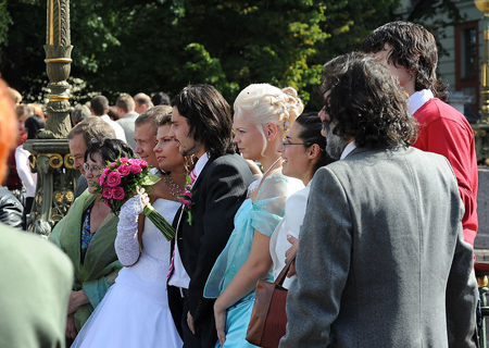 四. 擔(dān)任證婚人 與國(guó)內(nèi)的習(xí)慣不同,證婚人即見證新人喜結(jié)良緣,而非一個(gè)有來頭的人,比如新人的長(zhǎng)輩,社會(huì)賢達(dá),或者最常見的直屬上司。這個(gè)時(shí)候,基本上作為伴郎可以中場(chǎng)休息一下了,因?yàn)榇蟛糠值墓ぷ饕呀?jīng)完畢,你可以暫時(shí)松口氣,在婚禮進(jìn)行曲中默默的祝福新人。 |