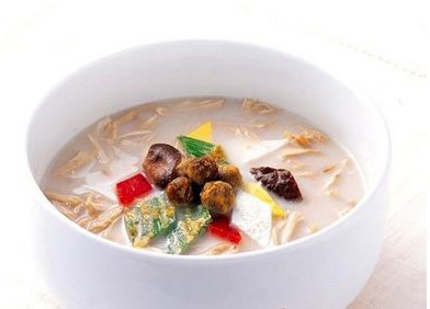 當(dāng)歸雞湯粥材料:當(dāng)歸10克,川芎3克,黃芪5克,紅花2克,雞湯1000克,粳米100克。 做法與用法:先將前三味用米酒洗后,切成薄片裝入布袋,加入雞湯和清水,煎出藥汁。去布袋后加入粳米,用旺火燒開(kāi),再轉(zhuǎn)用文火熬煮成粥。日服1劑,分?jǐn)?shù)次食用。 功效:可消除血虛所致的黑眼圈兒。 |