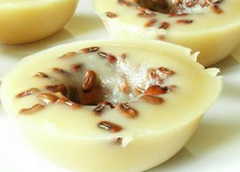 傳統(tǒng)的砵仔糕是以臺(tái)山的瓦砵仔制作的一種糯米糕點(diǎn),現(xiàn)在在香港街頭所見的大多是用小瓷碗制作,呈半圓形,用足簽串著,吃起來爽口滑溜,別具老式香港小食情懷。 原料: 粘米粉半斤,黃砂糖半斤,清水2杯,紅豆適量。 做法: 1、洗凈紅豆后煮至軟身。用清水煮溶糖,待凍備用。將已凍之糖水加入粘米粉中攪成稀漿。 2、煮滾余下之清水,慢慢撞入稀漿中攪勻,邊倒邊攪。然后倒入小碗中,再加入適量紅豆。放入蒸籠上,以猛火大滾水蒸20分鐘。蒸熟后,即可食用。 碗仔翅