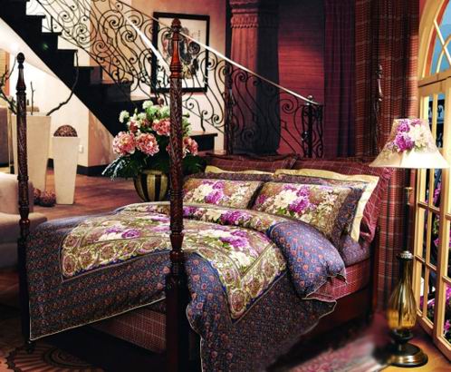 富安娜的“翡冷翠之夜”觸感細膩。野性混搭柔美,“豹紋”組合“花卉”,是今年秋冬富安娜新品中最富視覺沖擊力的系列!鞍<罢T惑”套裝中,同一套床上用品中,出現(xiàn)了兩種截然不同風格的圖案,雙面色彩混搭,其中一面是色彩豐富的歐式古典繁花,另外一面的紋理則是狂野豹紋。配套的床單、床笠或者枕頭,也做同樣的組合搭配,洋溢著富麗而散亂的浪漫。 咖啡色主色調,襯托紅與金,表面的紋理充滿韻律感。風格上呈現(xiàn)出懷舊的古典主義,但細節(jié)搭配更富于層次和變化。多層次立體化的特點,也同樣表現(xiàn)在另外的“藏藍”的翡冷翠系列里。