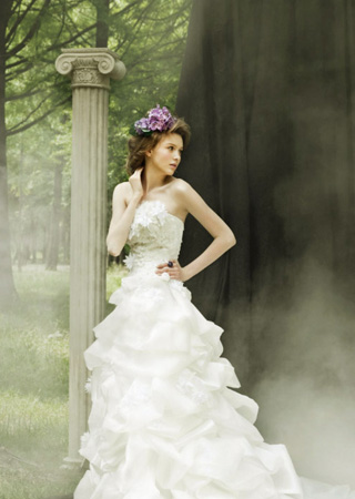 無肩禮服,華麗裙擺,好像森林里的精靈。