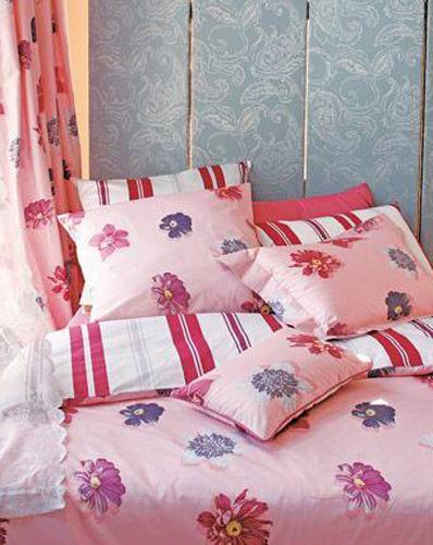 粉色底床品加花朵圖案,更顯嫵媚感。