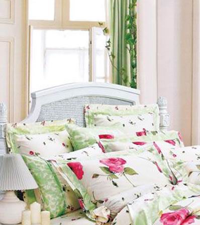 白色玫瑰花朵圖案床品,清新而浪漫。