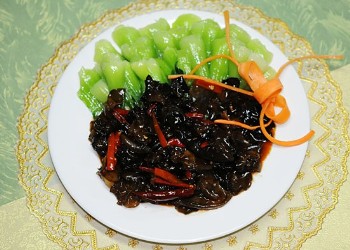 主料:小油菜 配料:木耳、尖椒絲 調(diào)料:姜末、鹽、白糖、米醋、醬油、番茄醬、辣椒油、清湯、水淀粉各適量 做法: 將油菜剝?nèi)ダ先~,整顆不要掰散。木耳摘洗干凈一同下入沸水中汆燙撈出用涼水投涼備用。將所有的調(diào)料用一只碗兌成魚香汁(姜末除外)待用。炒鍋上火加入底油用姜末辣椒絲炸出香味,下入油菜木耳快速翻炒倒入兌好的魚香汁翻炒均勻即可裝盤。 特點(diǎn): 此菜造型獨(dú)特,甜、酸、咸、鮮、辣五味俱全。 營(yíng)養(yǎng)與健康: 油菜中含有豐富的鈣、鐵和維生素C,胡蘿卜素也很豐富,是人體黏膜及上皮組織維持生長(zhǎng)的重要營(yíng)養(yǎng)源,對(duì)于抵御皮膚過(guò)度角化大有脾益。油菜還有促進(jìn)血液循環(huán)、散血消腫的作用。黑木耳對(duì)于補(bǔ)鐵有很好的功效。它比綠葉蔬菜中含鐵量最高的菠菜高出20倍,比動(dòng)物性食品中含鐵量最高的豬肝還高出約7倍,是各種葷素食品中含鐵量最多的。因其含鐵量高,可以及時(shí)為人體補(bǔ)充足夠的鐵質(zhì),所以黑木耳可做為一種天然的補(bǔ)血食品。 |