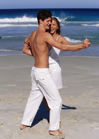 美景當前,攝影發(fā)燒友都不其然將焦點放在景物上,忘了人物的重要性。須知道蜜月的主角是一對新人,在拍攝風景之余,也少不免要表現一對新人甜蜜溫馨的畫面。例如,可以采用傻瓜機中的人像模式,或用較大光圈來弱化背景,突出人物的笑容和表情。