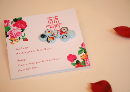 2、精美喜帖的必要性 不少人質(zhì)疑請柬在今天是否仍然必要?為什么不用電話邀請客人?請柬的必要性在于它為你的婚禮定下基調(diào)和氛圍。人們保存請柬以備忘婚禮的時間、日期和地點,制作精良的請?zhí)划斪骰槎Y的紀念品保存下來,而電話邀請則明顯地表示來不及發(fā)出書面邀請。(許多日程安排繁忙的人,僅靠電話提醒太過輕率)。 |