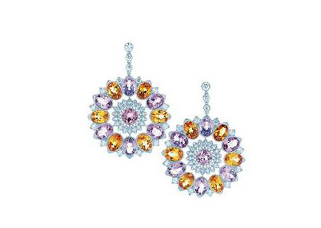 藍(lán)色的寶石水鉆耳環(huán),上面鑲鉆的水鉆設(shè)計讓這款耳環(huán)變的格外的具有奢華感,用彩色寶石創(chuàng)造了神奇的美麗珠寶,是精致時尚和典雅藝術(shù)完美結(jié)合。 七彩顏色的電氣石寶石將這款耳環(huán)襯托的格外亮麗,新娘配戴上這款電氣寶石耳環(huán)讓新娘的耳間煥發(fā)迷人的光彩。絢麗繽紛的色彩加上水晶的亮麗光茫將新娘的耳間變的格外的美麗。