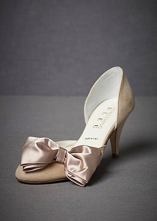 白色蝴蝶結緞帶婚鞋,是最經(jīng)典的婚鞋款式,但是可愛指數(shù)相當高,一點都不俗氣。