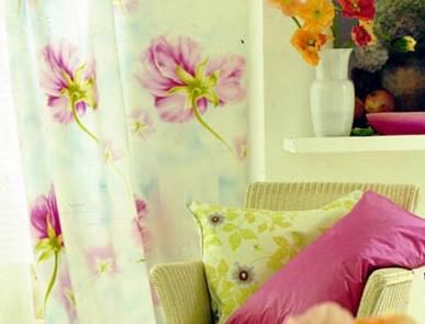 條狀內(nèi)簾與花朵團簇的外簾,交叉式設(shè)計增添了視覺亮點。同花色靠墊+白色靠墊疊加擺放,增加了層次感。