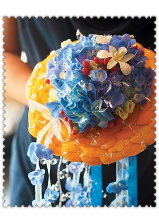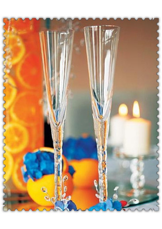 手捧花也要擁有水果的清新 想象中的水果主題婚禮,美麗的新娘就要像夢中伊甸園的水果精靈一般出現(xiàn)在來賓面前。一束特別設(shè)計、散發(fā)著水果清新香氣的手捧花當(dāng)然是新娘的必勝加分單品。與婚禮場地裝飾色彩相統(tǒng)一的橘色和藍(lán)色,巧妙地用橘皮作為花托,既環(huán)保又新鮮,令人過目不忘。 蠟燭與水晶的交相輝映 蠟燭和水晶一直都是婚禮裝飾的經(jīng)典之選,將這兩者相加,在水果與鮮花的整體設(shè)計中突出精致與細(xì)膩,亮晶晶的感覺也為原本清新十足的婚禮增加了幾分華麗感。而最妙的就是,在低低垂垂的水晶吊飾下,放上幾只高品質(zhì)的白蠟燭,燭光點點,輝映水晶的璀璨,加上水晶杯和美酒,完美的婚宴就這樣愉悅的開始。 |
