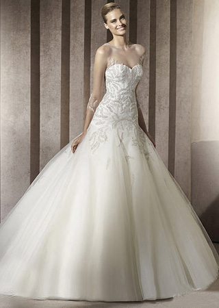 珠繡慢慢延伸,讓這件款式簡單的婚紗美艷奢華起來。