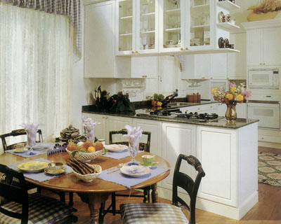 小廚房的使用面積有限,在整體色彩安排方面,切忌花花綠綠。特別注意不能使用印有立體感圖案或明暗對比強(qiáng)烈的裝飾材料,否則不僅會使廚房面積在視覺上顯得狹小,而且不易清潔。 |