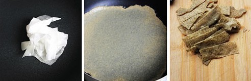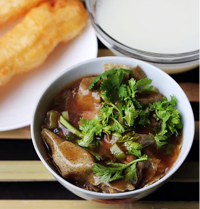 鍋巴菜,其實它不是鍋巴做的菜,只是一種傳統(tǒng)早餐的名字,我在天津曾有幸吃過一次,覺得非常不錯。某次就嘗試了一下,沒有所謂的正宗方子,照著網(wǎng)友的作品畫瓢,味道么,還是不錯的,但是談不上地道。發(fā)現(xiàn)俺的胃真的很中國式,喝豆?jié){吃包子吃油條都超級舒服,洋快餐滴還是不行。 鍋巴菜(好像也叫嘎巴菜) 原料:綠豆面、小米、芝麻醬、腐乳汁、香油、生抽、鹽、糖、香菜、水淀粉。 做法: 1、這個做法真是眾說紛紜,有的說是純綠豆面,有的說是綠豆大米面摻合,有的說是綠豆小米面,無法判斷。根據(jù)俺自己的想法,把綠豆和小米面以2:1混合,加入水調(diào)成糊狀,靜置一會; 2、平底鍋擦少量油,開小火,燒微熱后,關(guān)火,舀一勺面糊,攤開,做成薄薄的煎餅,煎熟后拿出來晾干一下,涼后切成條狀或菱形塊,以此類推,做出足夠多的鍋巴; 3、兩大勺芝麻醬中加入幾滴香油和適量涼開水調(diào)勻,再加入一勺腐乳汁、適量白糖和生抽、辣椒油調(diào)勻制成麻醬汁,香菜洗凈切成小段待用; 4、鍋中放入適量油,待油溫?zé)裏釙r,放入大料炸出香味,愛吃辣的可以放點辣椒,再加入蔥末和姜末爆香,倒入適量的生抽、高湯(沒有放清水)和鹽,轉(zhuǎn)小火加熱燒開,將湯內(nèi)的大料、辣椒等撈出,只留湯汁,隨后用水淀粉勾芡,加入雞粉,淋幾滴香油即可關(guān)火,把鍋巴放入鹵汁中,盛入碗中,再淋上麻醬汁,撒上香菜段,食用時拌勻。 注意: 1、俺這個并非什么正宗做法,只是一個吃貨對記憶中美食的一種懷念而已,某些大神們就不要再來炮轟了,俺要是DIY出正宗的,就不在這里混了,啥叫傳承; 2、原來的做法里好像有香干,這個俺既不會做,也買不到,干脆省略; 3、到底是綠豆大米還是綠豆小米,這個俺真不知道,雖然普通的鍋巴都是大米做的,但是我感覺這里用的應(yīng)該是小米,因為小米更香,更有營養(yǎng)! |