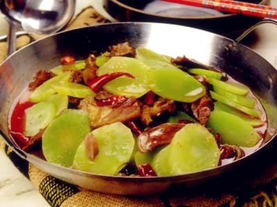 主料:板鴨一只,萵筍一根,干辣椒節(jié)10克,鹽2克,味精2克,醬油2克,蒸魚豉油5克,四川豆瓣醬20克,鮮湯300克,姜末5克,茶油15克。 做法: 1、板鴨入籠中大火蒸1小時(shí)至透,取出放涼,切長5厘米、寬3厘米的條,入沸水中大火汆1分鐘,撈出控水。 2、萵筍去皮洗凈,斜刀切厚0.2厘米的片。 3、鍋入茶油,燒至七成熱時(shí)放入干椒節(jié)、四川豆瓣醬、姜末小火煸香,放入萵筍片、板鴨條小火翻炒2分鐘,入鮮湯小火燒5分鐘,加鹽、味精、醬油、蒸魚豉油調(diào)味后出鍋,放入干鍋內(nèi)上桌即可。 |