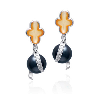 鑲嵌有鉆石的柔婉的線條給淡雅的黑珍珠增添了別樣的玲瓏。在這款耳環(huán)將使你顯得優(yōu)雅端莊,靈氣動(dòng)人。
