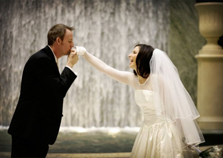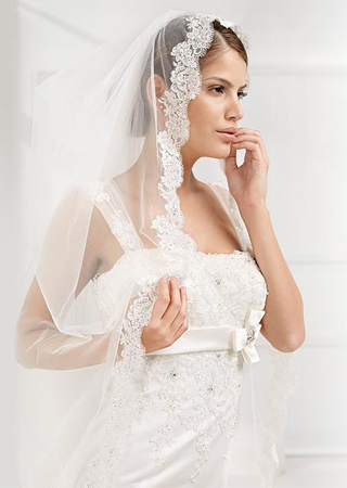 真人秀女主持Teresa Strasser穿的可是vera wang喲。雖然她本人不大只,這件包裹得嚴(yán)嚴(yán)實(shí)實(shí)的婚紗也完全不適合大只新娘(豐滿(mǎn)的姑娘應(yīng)該要多露才是對(duì),越穿多越顯得大只),她的頭紗完全可以成為大碼新娘的參照物。