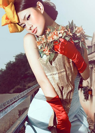 當然,為了避免照片的單調(diào)我們還可以用一些小的裝飾物來點綴。比如,新娘手中的捧花可以選擇顏色很鮮明的;新娘配飾可以選擇一些流行元素等等。