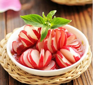 切好的蘿卜用鹽腌一下,然后調(diào)蜜汁,蜂蜜到入碗中,加一點(diǎn)白醋,一點(diǎn)涼水,調(diào)成酸甜口的即可