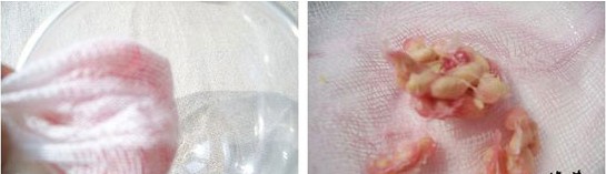 準(zhǔn)備好一只寬口杯和一塊干凈的紗布