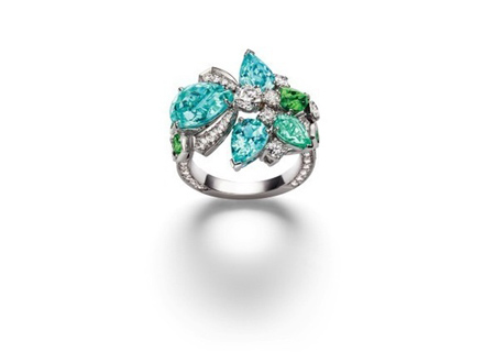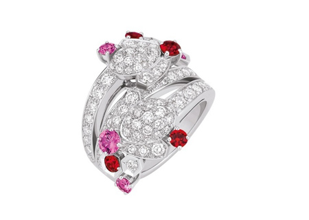 紅色水晶石和深粉色藍(lán)寶石讓鉆石蜜蜂顯的更為耀眼和栩栩如生。
