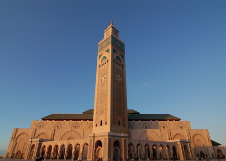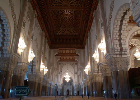 卡薩布蘭卡市中心的聯(lián)合國廣場北面,僅僅隔著一道不很高的土黃色城墻,卻是另一番天地:狹窄密集宛如迷宮的小街小巷,喧鬧活潑的集市,面的柏柏爾女人和穿傳統(tǒng)長袍的男子行走其間。這里是卡薩布蘭卡的阿拉伯舊城區(qū),人稱“麥地那”(Medina)的城中之麥地那的北面,臨近大西洋處,昂然聳立著卡薩布蘭卡的地標(biāo)──哈桑二世清真寺(MosqueeHassanII)。據(jù)說,它是目前世界上規(guī)模第二大的伊斯蘭教寺院,僅次于沙特阿拉伯的圣城麥加(Mecca)大清真寺。從海上遠(yuǎn)眺哈桑二世清真寺錯落有致的綠屋頂,像一艘巨輪泊于大西洋岸邊,高聳而筆直的主塔是它的桅桿。這座方形主塔高度近二百米,在宗教建筑物中是世界之最,遠(yuǎn)遠(yuǎn)高過埃及的大金字塔和羅馬的圣彼得大教堂。 禮拜大殿可容下二萬五千名信眾,除了玻璃是威尼斯制造外,其他所有材料都為摩洛哥本土出產(chǎn)。但有趣的是,這樣一座從宏觀結(jié)構(gòu)到最細(xì)微的裝飾處處體現(xiàn)著摩洛哥民族特色的宗教建筑,其設(shè)計者卻是一名外國人──法國建筑師米歇爾·朋索。 朋索的設(shè)計融合了阿拉伯的思想、摩爾與柏柏爾民族的藝術(shù),亦不排斥現(xiàn)代科技。例如,禮拜大殿的天頂實(shí)際上是一巨大的可移動天窗,開合由電腦控制。當(dāng)我隨著一眾參觀者立于殿內(nèi)仰望天窗徐徐開啟,陽光從天而降時,我意識到現(xiàn)代建筑確能發(fā)揮出傳統(tǒng)宗教建筑不可能有的功能,盡管哈桑二世清真寺從本質(zhì)上說仍是一所傳統(tǒng)的清真寺。 |