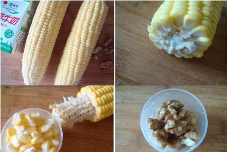 核桃玉米奶的做法材料集合圖: