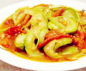 主料:西葫蘆一個、番茄2個、蒜 做法: 1、蒜切末,西葫蘆去瓤切片,番茄切塊; 2、鍋中加水,水開倒入西葫蘆加鹽焯一下水,然后裝盤備用; 3、熱鍋倒入油,加入蒜末煸炒爆香 ,然后加入番茄翻炒(番茄一定要用熟透的,那樣能炒出紅油來)炒出來使這個樣子滴; 4、倒入西葫蘆,,加入一點鹽,少許白糖翻炒幾下即可。 |