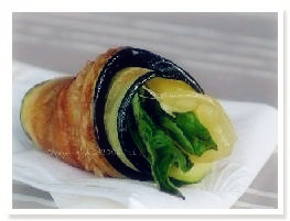 材料:西葫蘆長片2片,橄欖油適量,奶酪片適量,九層塔葉1片 做法: 1.縱切兩片薄(2毫米)的西葫蘆長片,在平底鍋里噴一些橄欖油,中火加熱 2.放西葫蘆片,兩面翻烤至軟,略有金黃色. 關(guān)火 3.兩片西葫蘆重疊在一起,中間加撕成條的奶酪片(或用奶酪絲) 4.加一小片九層塔葉,卷起,放入微波爐熱10秒(或到奶酪融化)就行了.之所以用微波爐是因?yàn)槲抑蛔隽艘粋(gè) 5.要是做的多的話,卷好型后可以等到要吃的時(shí)候再加熱. 可以用平底鍋中火加熱. |