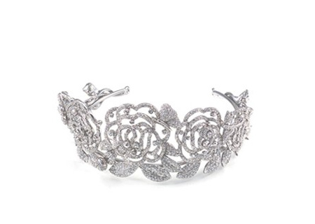 搭配指南:白色的婚紗最好搭配銀白色的珠寶,鉆石、鉑金、水晶、珍珠都是適宜的材質。具有歐式風格的藤蔓設計、古典高雅的裝飾主義風格、現(xiàn)代的極簡主義風格都可以選擇。在歐式婚禮中,許多人會選擇大形的頸飾和頭飾,但也有人會完全不選用,繁簡皆宜,全看新娘的喜好。