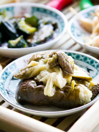 秋天的茄子有種獨(dú)特的香氣,也許是因?yàn)閮?nèi)部籽的成熟使得腌漬好的蒜泥茄子爽口又有一種微微的韌性。這道小菜之所以最適合在秋天里腌漬,就是因?yàn)榍锴炎幽欠N霸道的口感使得尋常小菜瞬間升級,香辣下飯,小小的茄子也可以變身米飯殺手。 |