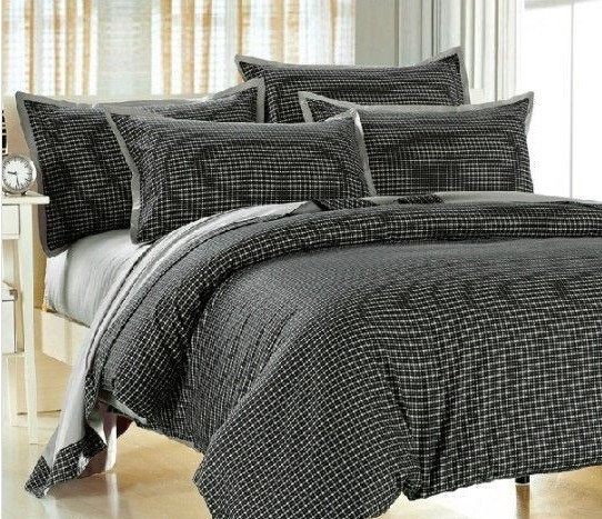 Part Three:歐美流行風(fēng)床品套件推薦 推薦產(chǎn)品五:灰色提花格全棉床品四件套 標(biāo)準(zhǔn)規(guī)格:床單 245*250cm 被套200*230cm 枕套48*74cm ,1.5m規(guī)格可以適用于1.5和1.8米床 1198元/套 加大規(guī)格:床單 245*270cm 被套220*240cm 枕套48*74cm ,1.8和2米床適用 1318元/套