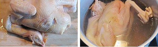 2、煮雞的時(shí)候只要放料酒就可以,最多再加點(diǎn)生姜,不可自做主張加其他亂七八糟的調(diào)料的;