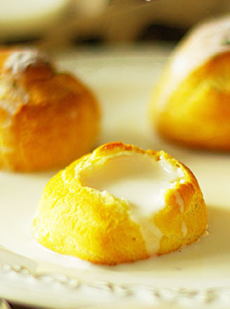 用勺子粘了冷水,將頂端的尖角壓平。放進預(yù)熱好的烤箱中烘烤
