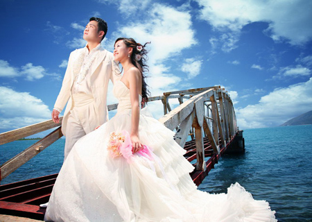 三亞陽光的見證 美麗的三亞,洋溢起青春的活力。熱帶的迷人風(fēng)景、藍(lán)到極致的天海一色、海底世界的獨(dú)特婚禮、摩托快艇的刺激飛馳……一切已經(jīng)足夠吸引一對新人來這里記錄下一生的誓言。 海水是碧藍(lán)碧藍(lán)的,水下的魚兒自由地游來游去。細(xì)軟的沙灘讓你們有玩玩堆沙子的欲望。而特色的潛水婚紗,更是能讓你們和小魚做伴,拍下最獨(dú)特的婚紗照。海螺、海參、海膽,海底地面的彩色珊瑚群,身上有藍(lán)色發(fā)光線條的不知名小魚都在你們身邊穿梭,絕對奇妙的婚紗照旅程。 |