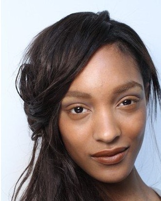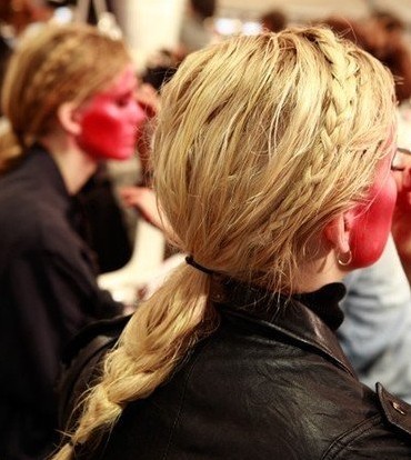 側(cè)編發(fā)搭配無修飾眼妝,制造整體迷離妝感。