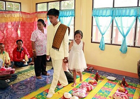 傳統(tǒng)泰式婚禮還有鋪床和送新娘入洞房的儀式。鋪床的時(shí)間一般是舉行儀式的當(dāng)晚,新娘請來鋪床的必須是兒女雙全、有身份、德高望重的一對恩愛夫妻。鋪床人要為新郎新娘掃床鋪、鋪被褥、擺枕頭、掛蚊帳。由新娘準(zhǔn)備一只冬瓜、一只白貓、一塊研藥石、一口鍋,鍋里盛滿清水,一個(gè)托盤,托盤上放著成包的綠豆、芝麻、稻谷及彩禮等,鋪床人將這些東西放置在新人床邊。這些東西都有寓意。清水、瓜果象征新郎新娘心靈純潔、冷靜。研藥石比喻恩愛之情深重。綠豆和芝麻象征日后事業(yè)發(fā)達(dá),并表示自此與父母分開,獨(dú)立生活。白貓則為新家捕捉老鼠之用。鋪好床后,鋪床人要在新床上躺一下,妻子躺在左面,丈夫躺在右面,并互相交談,內(nèi)容是祝新郎新娘幸福、白頭偕老等。至此,鋪床儀式即告結(jié)束。 接著進(jìn)行新郎守新房和送新娘入洞房儀式。鋪床儀式結(jié)束后按習(xí)俗,新郎需單獨(dú)守新房數(shù)日。傍晚,新娘要為新郎送替換的睡衣一套。新郎守洞房為三夜、五夜或七夜不等,直至送新娘入洞房的良辰吉日。屆時(shí),由新娘父母或鋪床夫妻送新娘入洞房,交給新郎,并教導(dǎo)新娘要忠誠丈夫,夫妻要相親相愛等,F(xiàn)代泰人結(jié)婚程度簡化,多在一日內(nèi)完成,故新郎不再守新房。 |