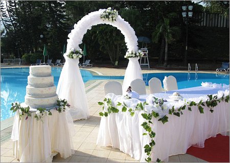 高高的天花板、落地的飄窗、大大的舞池,你已經(jīng)瘋狂地愛上了這個QueenSize大房間,如何將婚宴餐桌擺放得大氣、高貴呢?那就是拉伸你的桌子!你可以將利落簡潔的長條桌擺成幾排或U型。用矩形擺放出圣殿般的婚宴廳。 湖藍色的長桌上枝條蔓延,不是死氣沉沉的伸展,卻有種飄飄然的朦朧。純白色的陶瓷花瓶與復(fù)古燭臺的穿插打破枯燥的平行線。若不是幾排條形桌連成的橫紋,縱有裊裊婷婷的落地飄窗,層紋浮凸的頂梁方柱,入目處也只有滿眼空曠。丟棄了中規(guī)中矩的圓與正方。高花瓶、低容器、玻璃杯無不是矩形的獨特延展。微妙中,卻將一切顛覆重組。超長黑色桌旗,搭配白色的幾何圖樣。在桌花與餐具的呼應(yīng)下?臻g中的平行線在悄然彌漫。矩形輕松填補了絕大部分空間后,如何營造亮點?技巧就是:打造幾處重點,利用幾何造型與色彩的呼應(yīng),分散細節(jié)。比如白色竹節(jié)椅呼應(yīng)白色燭臺與花瓶,白色餐盤上的黃色菜單則應(yīng)和著白色座椅上的黃色軟墊。 |