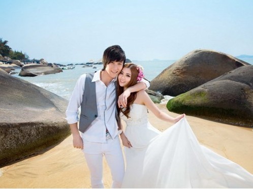 黑白配淑媛 鮮明到令人屏息的黑與白,激蕩出動(dòng)人的時(shí)尚音符,背心式吊頸婚紗彌漫美式明星魅力,魚尾設(shè)計(jì)勾勒新娘的曼妙輪廓,在大麗花盛放的鏤空白裙上覆蓋黑色蕾絲外罩,仿佛紳士馬甲般醒目,束上緞帶蝴蝶結(jié),詮釋優(yōu)雅意味,黑色絲綢點(diǎn)綴的草編騎士帽巧妙地印證中性主張,明艷的漿果色雙唇,耀眼的粉紫花束,正以油畫般濃郁的色彩突顯著精彩的黑白藝術(shù)。
