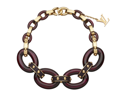 這款項(xiàng)鏈采用仿虎眼石的樹(shù)脂和珍珠魚(yú)皮,來(lái)打造各個(gè)鏈節(jié),尾端飾有路易威登品牌標(biāo)志的垂飾,十分耀眼奪目。