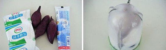 原料:熟紫薯、牛奶、煉奶(沒有的可以不加)。