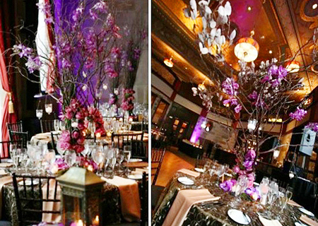 非常華麗的餐桌布置,深色的餐桌花布和桌上的高檔花朵,明亮動(dòng)人而且華麗高貴,讓人不禁想象著高貴迷人新娘的驚艷出場(chǎng)。如果你要體現(xiàn)華麗氣息,這絕對(duì)是經(jīng)典之選。