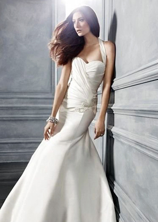 此外,完美的立體裁剪裙身上覆著層層疊疊的薄紗,走動時,微風吹過薄紗輕輕地舞動,優(yōu)雅風韻中帶著點少女的俏皮活潑。