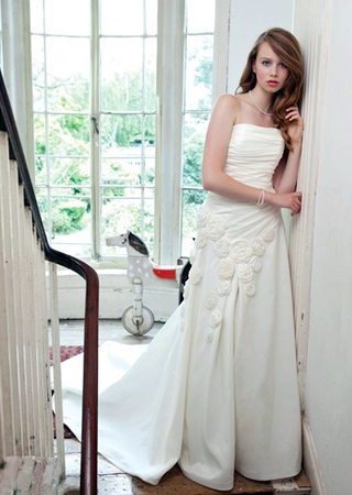 Alan Hannah并不為眾多中國(guó)新娘所熟知,但是在國(guó)外,它是家喻戶曉的品牌。這款裙子的亮點(diǎn)在于小花朵的裝飾,讓很多甜美派的新娘喜愛不已。