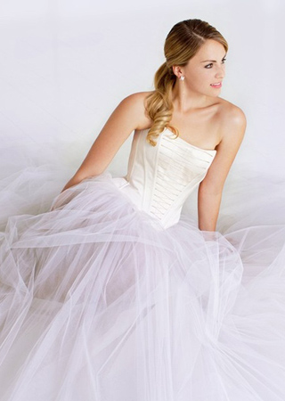 Kaviar Gauche Bridal Collection頗具時(shí)裝感,如果比較中性的新娘不喜歡花花朵朵的甜美款,淺灰色的裙身就很適合你喲!