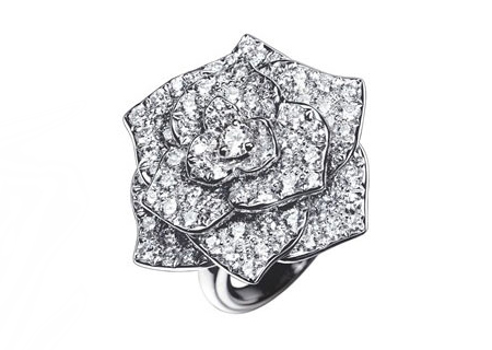 伯爵 Magic Gardens of Piaget系列 玫瑰鉆石戒指 PIAGET與玫瑰 同樣是玫瑰,PIAGET卻有著不同的演繹。伯爵的Magic Gardens of Piaget系列,再次以玫瑰作為焦點(diǎn),創(chuàng)作出雍容華貴的四款花型珠寶,這個純摯熱情的系列作品的設(shè)計(jì)靈感來自伊芙•伯爵(Yves G. Piaget),展現(xiàn)了意大利珠寶匠的創(chuàng)意和工藝。 細(xì)密鑲嵌鉆石的花瓣、和諧飽滿的曲線、蒼翠大器的形體,及它的純稚無瑕,勾勒出一個幻境,恍若是一朵具生命力且永恒開綻的花朵,在耀眼鉆石的描繪下,更顯栩栩如生。