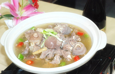 主料:當(dāng)歸30克,羊肉1500克 調(diào)料:精制油100克,姜5克,蒜5克,蔥5克,味精20克,雞精20克,料酒20克,胡椒粉5克,白湯3000克,鹽適量 做法: 1、姜蒜切片,蔥切成“馬耳朵”形,當(dāng)歸切成4毫米厚的片。 2、羊肉洗凈,切成3厘米見方的塊,入湯鍋汆水撈起。 3、炒鍋置火上,下油加熱,放姜蒜片,蔥,炒香,摻白湯,放羊肉,味精,雞精,胡椒粉,料酒,當(dāng)歸,燒沸,放鹽,除盡浮沫,倒入高壓鍋,壓10分鐘后起鍋入盆,上臺即可。 羊蝎子火鍋